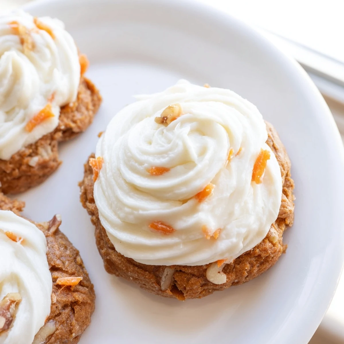 These soft, chewy treats capture all the comforting flavors of classic carrot cake in cookie form. Loaded with freshly grated carrots and warm spices like cinnamon and nutmeg, each bite delivers moist texture and cozy sweetness. The crowning touch is a generous swirl of tangy cream cheese frosting that perfectly balances the spiced base.