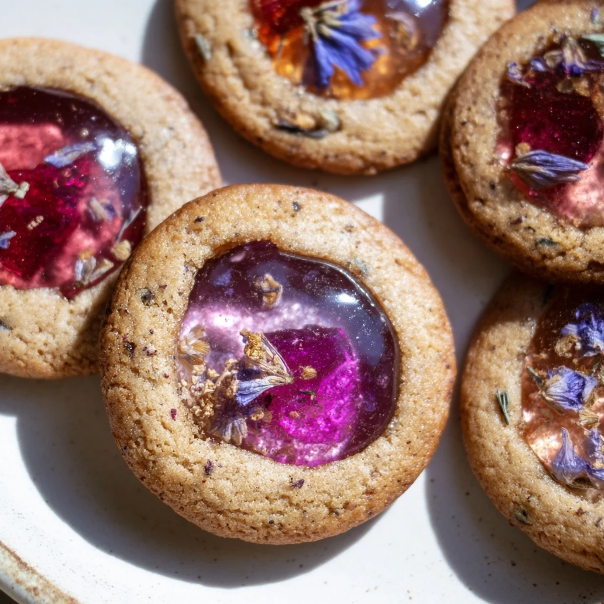 The stunning stained glass effect created by melted hard candies combined with delicate edible flowers makes these visually striking treats perfect for elegant gatherings. The translucent candy centers catch the light beautifully while the Earl Grey infusion adds sophistication.