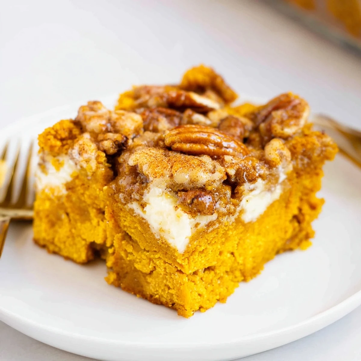 Whisk pumpkin puree, sweetened condensed milk, eggs, pumpkin pie spice, sugar and salt until smooth, then spread into a greased 9x13 pan. Sprinkle dry yellow cake mix evenly over the pumpkin, drizzle melted butter to moisten, and scatter chopped pecans. Bake at 350°F for 45–55 minutes until golden and set; cool at least 30 minutes. Toast pecans for extra crunch or swap to a spice cake mix for deeper warmth; serve warm or chilled with cream or ice cream.